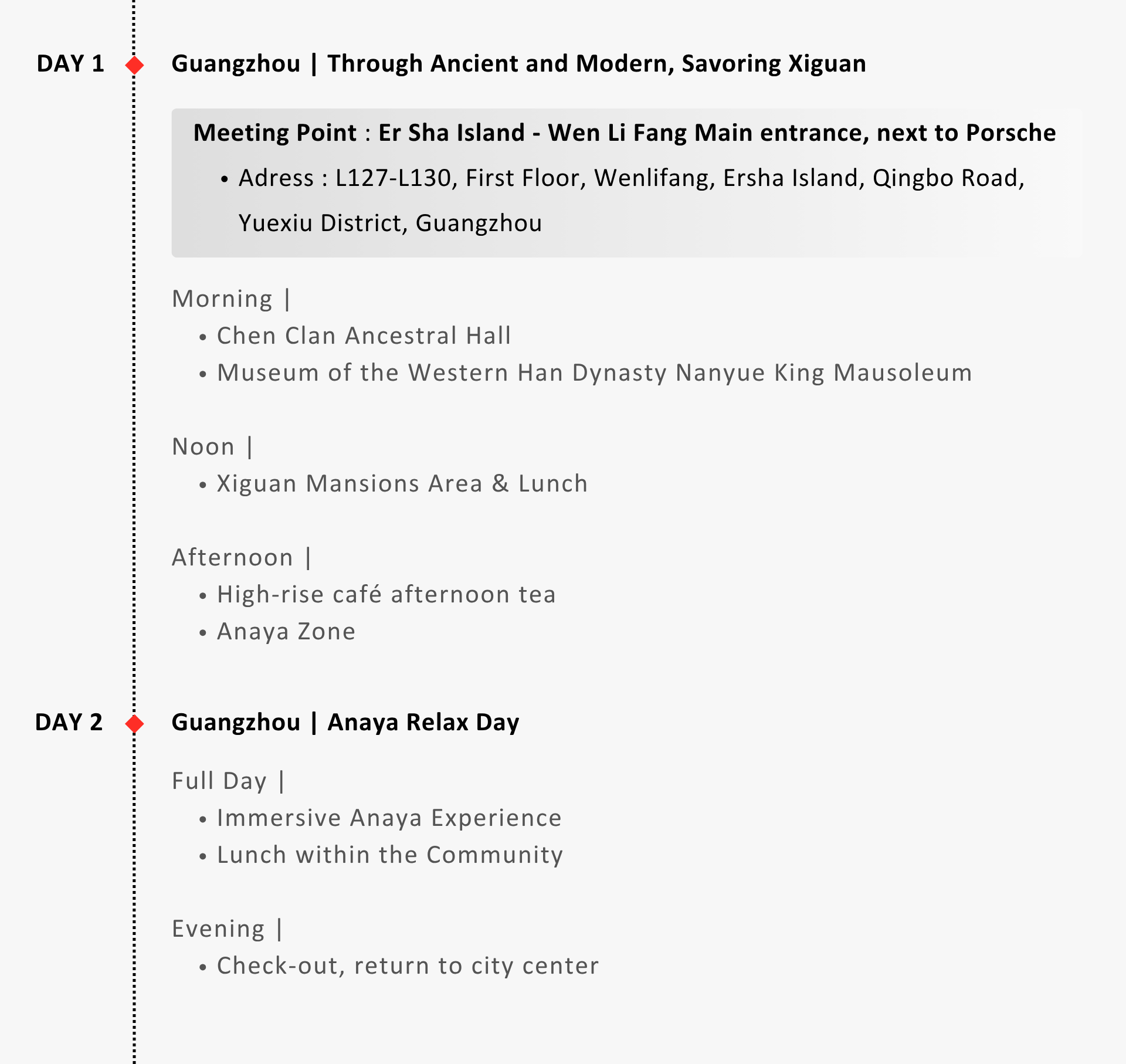 Experience two facets of Lingnan in two days. This journey creates a perfect exchange between culture and nature, embodying the region’s philosophy of balancing vitality with tranquility.