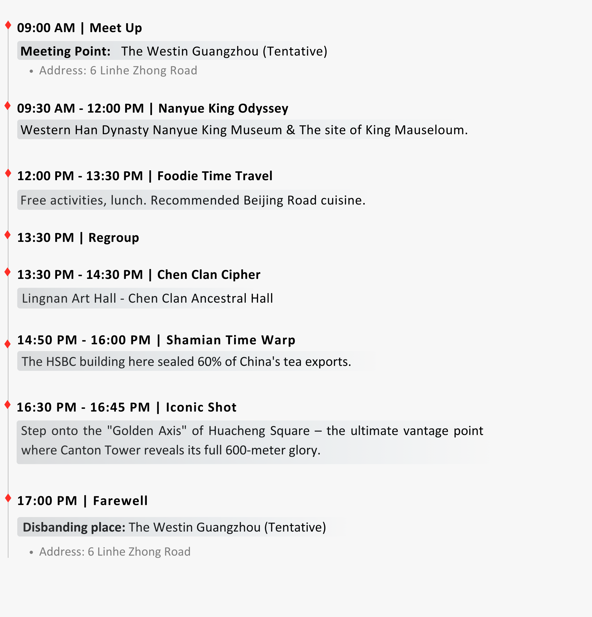 Explore the city's cultural landmarks blending heritage and modernity through a "compact capsule" day tour. Experience Guangzhou's dual soul: the earthy charm under arcaded Qilou buildingsand the modern pulse along the Pearl River.