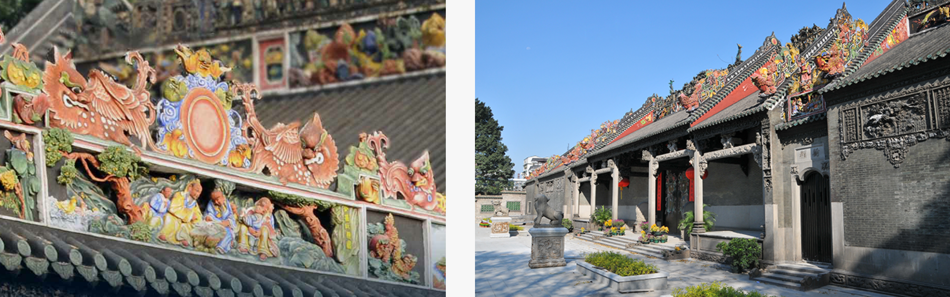 uDecorative Arts: Known as the "museum of Lingnan architectural decorations", it boasts superb craftsmanship of "three carvings, two sculptures, one casting and one painting" (wood carving, brick carving, stone carving, plaster sculpture, pottery sculpture, copper-iron casting, colored painting).
