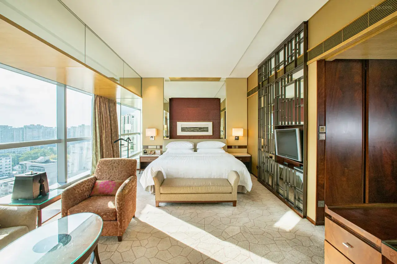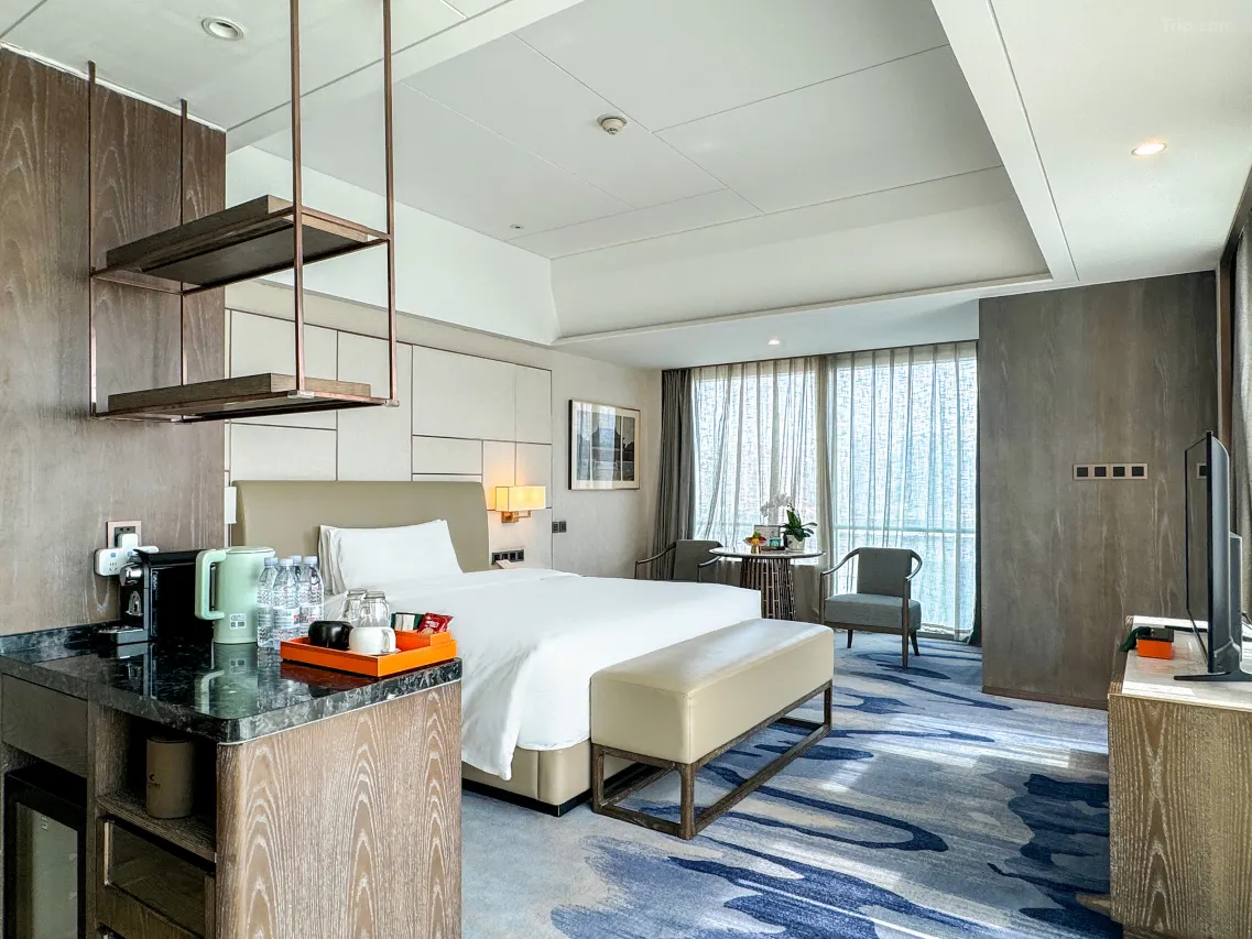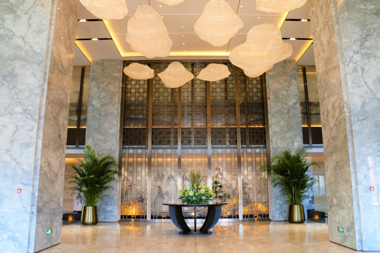 The hotel's guest rooms and suites feature elegant and comfortable interior decor. The hotel boasts 7 restaurants and bars with distinct styles. AZUR, a Michelin Plate-winning restaurant, and Xiang Palace Chinese Restaurant offer creative French cuisine and traditional Chinese flavors that are both refined and delicious. Xi Cun Japanese Cuisine, honored as the 2019 'Gault&Millau' Selected Restaurant, upholds the spirit of craftsmanship to convey authentic Japanese flavors. Additionally, Coffee CHA Buffet, which features a variety of international specialties, allows guests to indulge in a feast for the palate. Furthermore, the Lounge, Nine Skies Bar, and Chunshe Bar provide a relaxed haven for business and leisure.