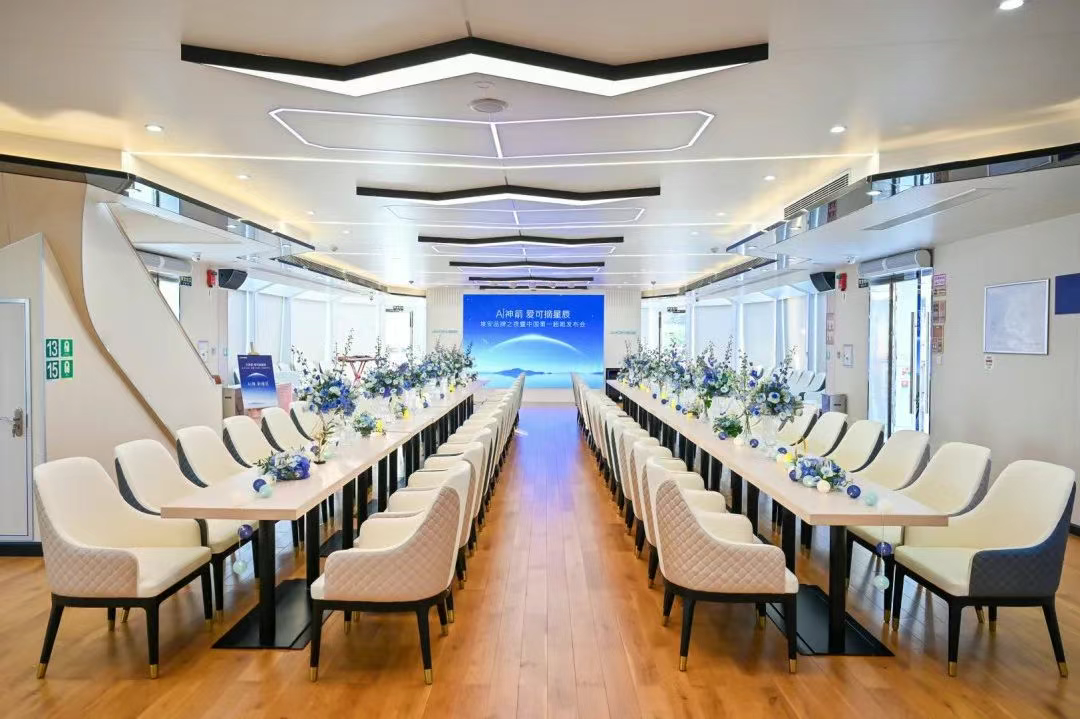 The second floor is a water-based multi-person conference center. The front cabin features a 270° panoramic landscape independent meeting room (accommodating about 20 people, which can meet different layout requirements), equipped with professional multimedia equipment and sound systems. Being here, you can enjoy the unique ultimate water-based meeting experience.