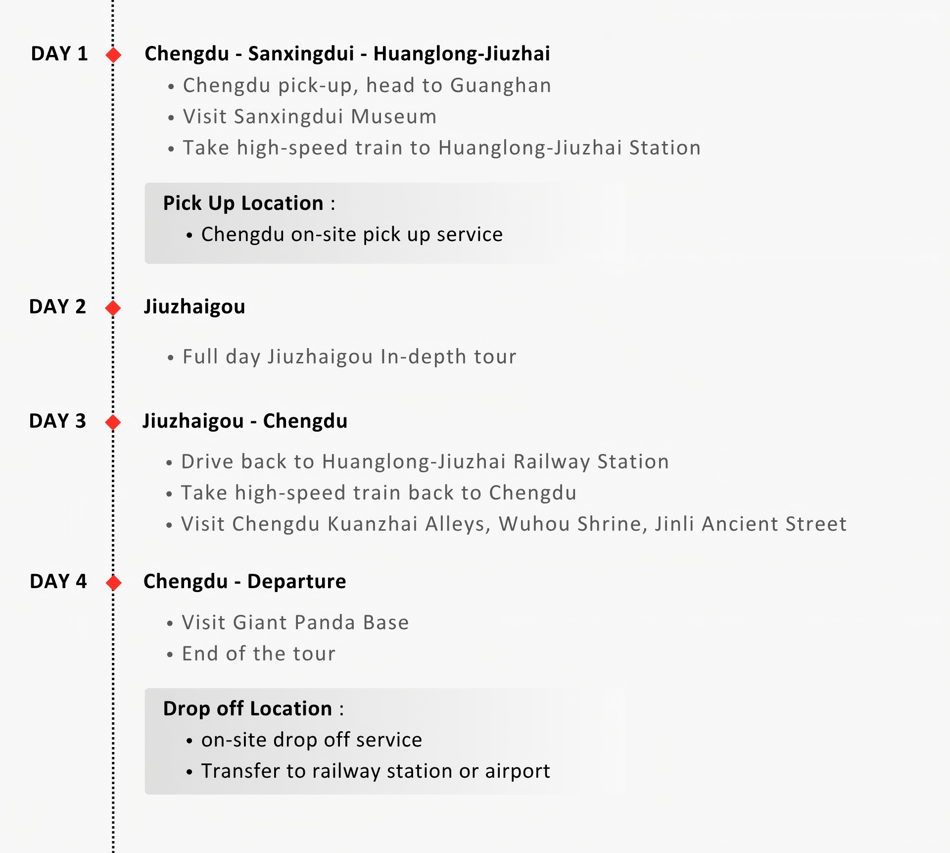²Highlights: Explore the ancient Shu civilization at Sanxingdui, experience the newly opened high-speed railway, enjoy the scenery of the Minshan Mountains along the way.