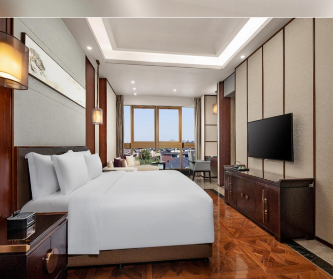 This is a hotel themed around poetry and painting, highlighting the grandeur of the prosperous Tang Dynasty. Here, you can experience the style of the Tang Dynasty and enjoy Chinese and Western cuisine.