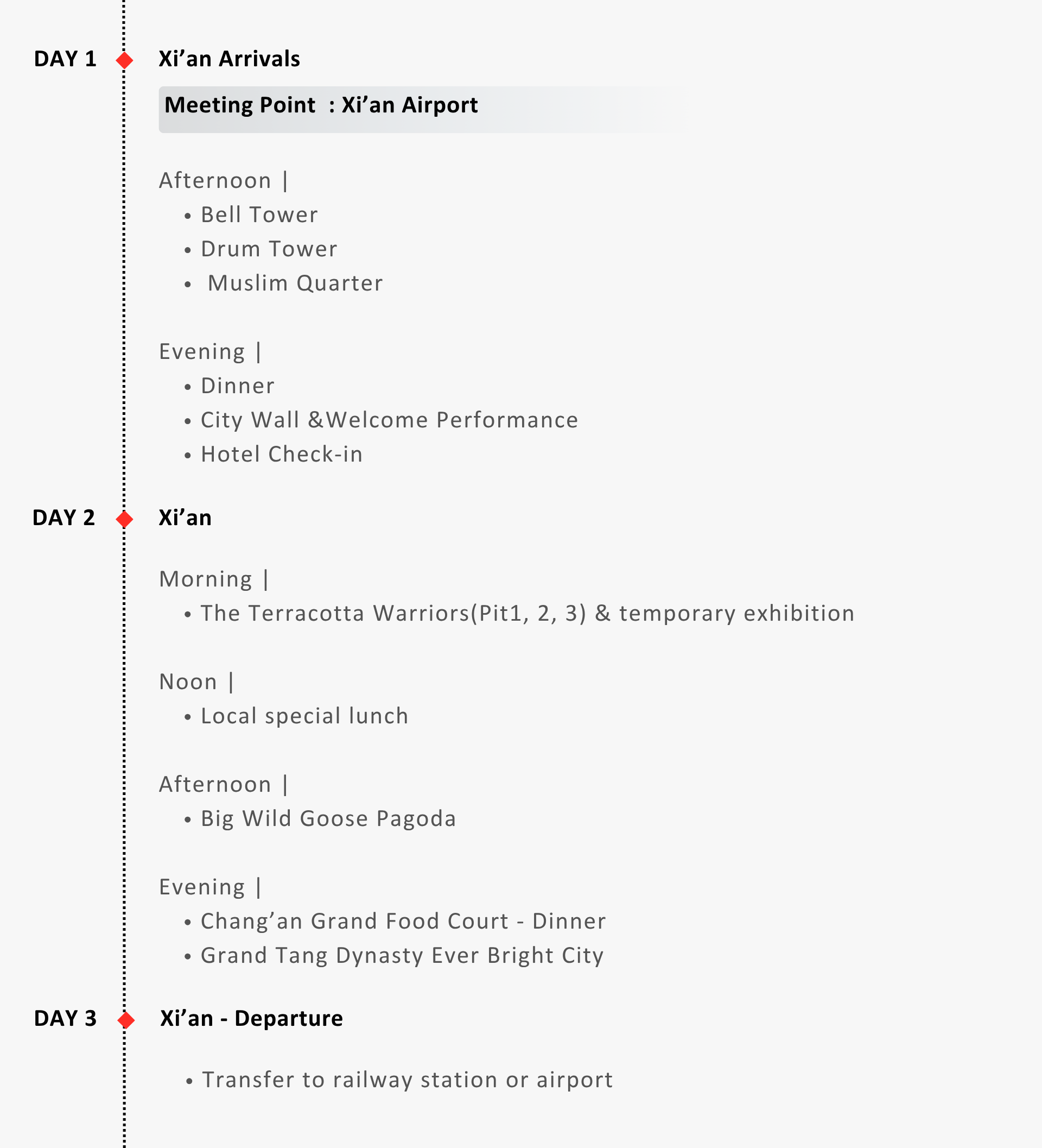 5. Tickets | Tickets to the attractions mentioned above( Xi'an Bell Tower, Drum Tower, Terracotta Warriors, Xi'an City Wall, Big Wild Goose Pagoda, City Wall welcome show )