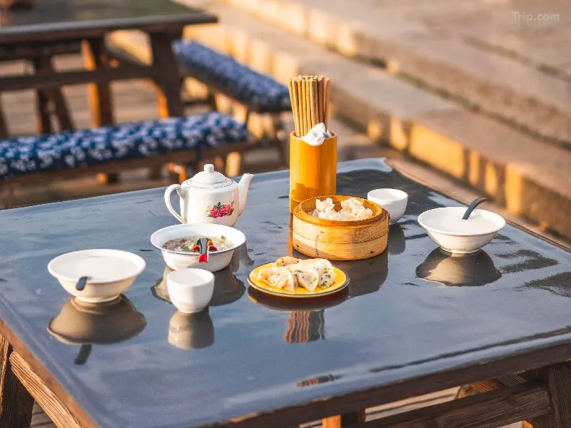 An exclusive experience for guests staying overnight in Xizha. Visit the recreated Water Market where vendors in boats once sold their goods. Enjoy a traditional breakfast of tea and small bites at a waterside table, soaking in the tranquil morning atmosphere before the day-trippers arrive.