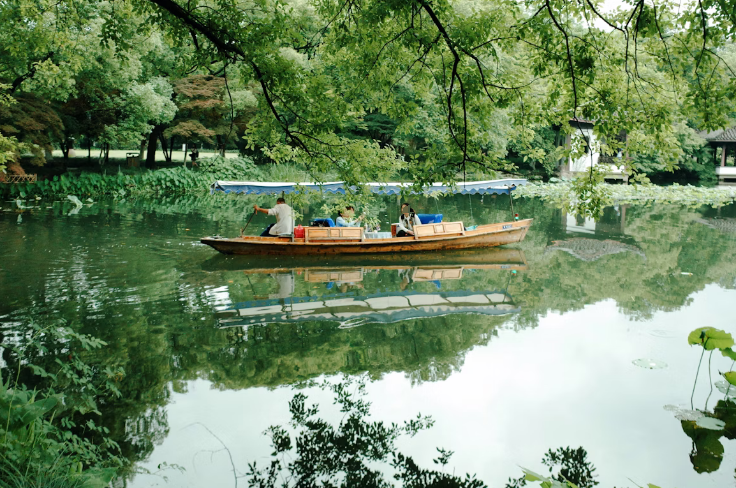Escape the crowds and experience the most serene part of West Lake. Glide through quiet waterways on a traditional wooden rowboat, passing under ancient stone bridges and through the lush, secluded landscape of Turtle Bay (Wuguitan). This is a "backstage" view of the lake that few tourists get to see.