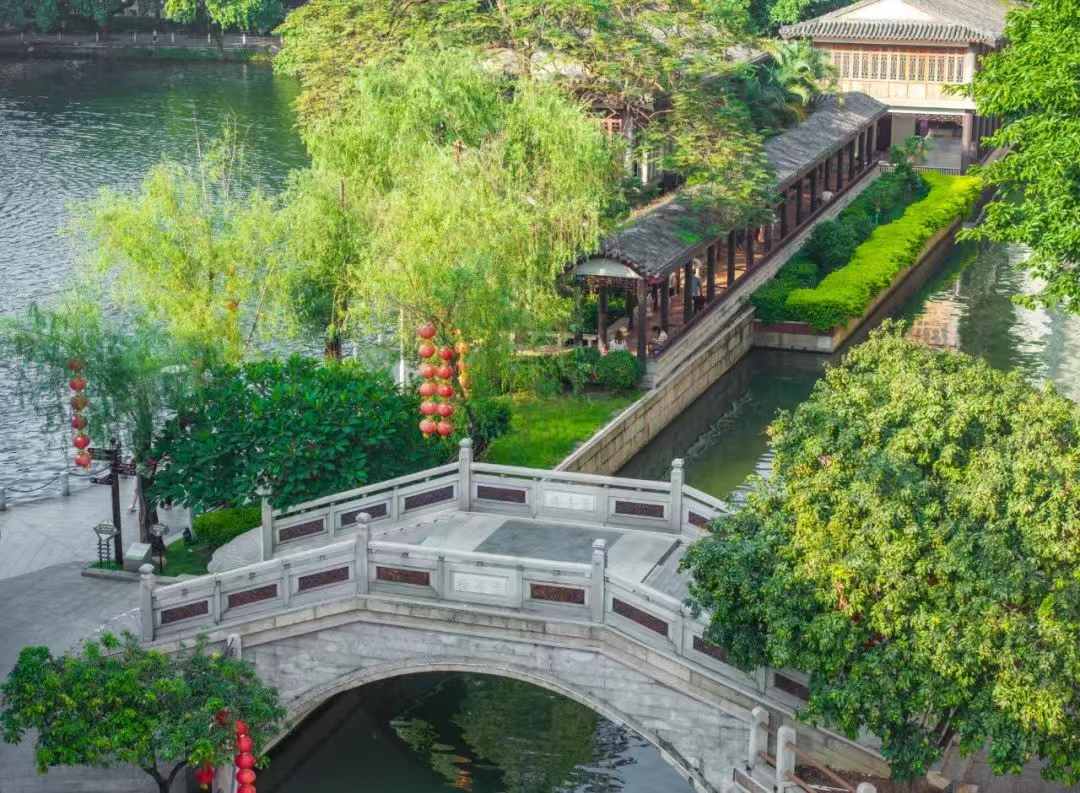 As one of Guangzhou's oldest water town scenic areas, Lychee Bay is renowned for its Lingnan water village landscape described as "a winding stream of emerald water flanked by red lychee trees." Once the imperial garden of the Southern Han Dynasty and a residential area for nobility during the Ming and Qing dynasties, it preserves the traditional water town layout of Xiguan. Visitors can experience the millennium-old water town atmosphere here.