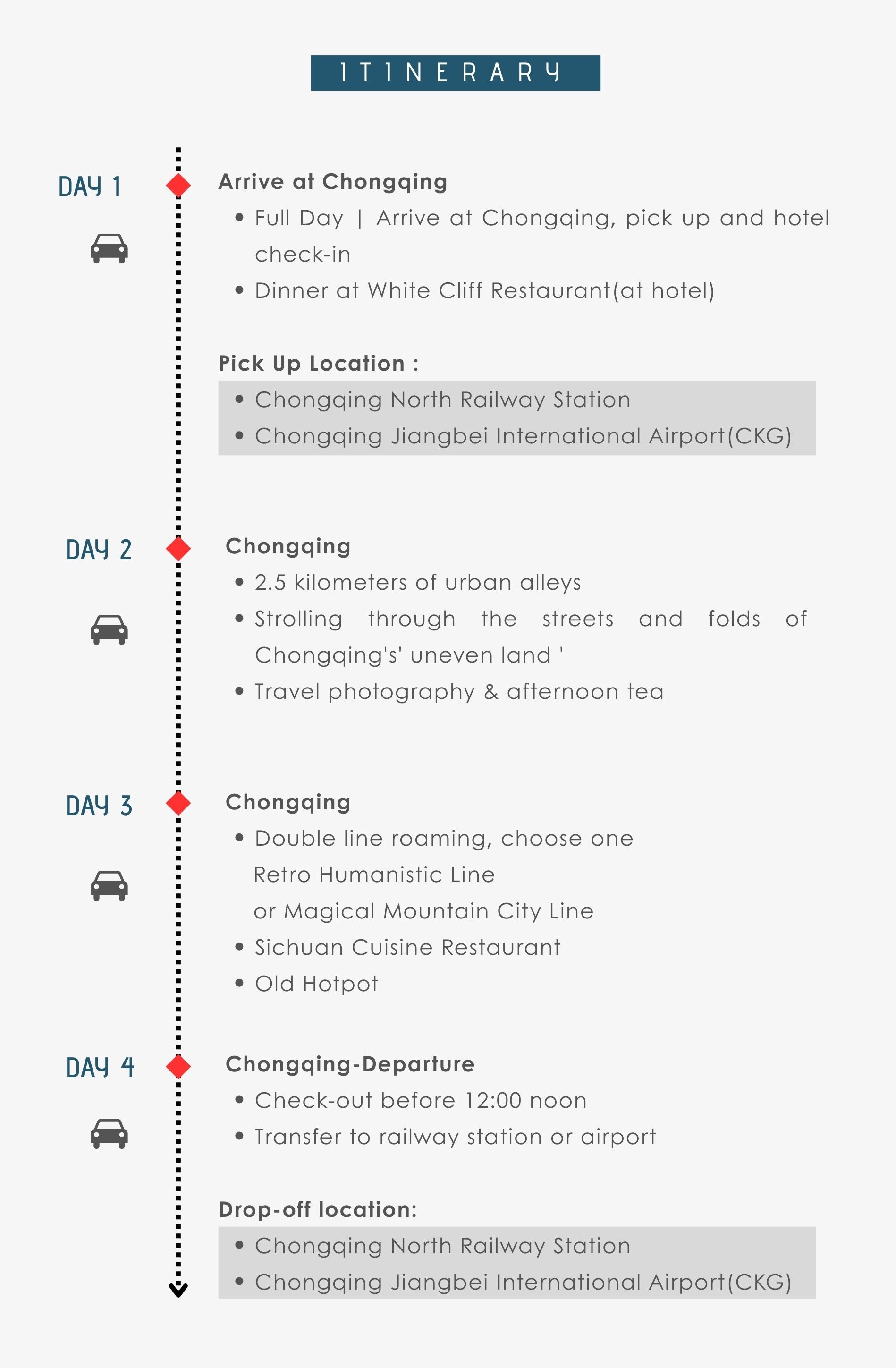 1. Transportation | Pick-up and drop-off at Chongqing North Railway Station/Chongqing Jiangbei International Airport, using a 7-seater Buick GL8 business van for the entire trip;