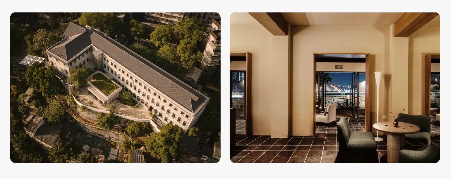 The guest rooms continue the "restoring the old as it was" concept,infusing modern design language into a classic layout. Each room features light and airy furnishings, historical window views, and a comfortable experience. Some rooms offer views of the Yangtze River and the city skyline, blending the vibrant history of the mountain city with a modern lifestyle, providing guests with a stay that is both culturally rich and stylish.