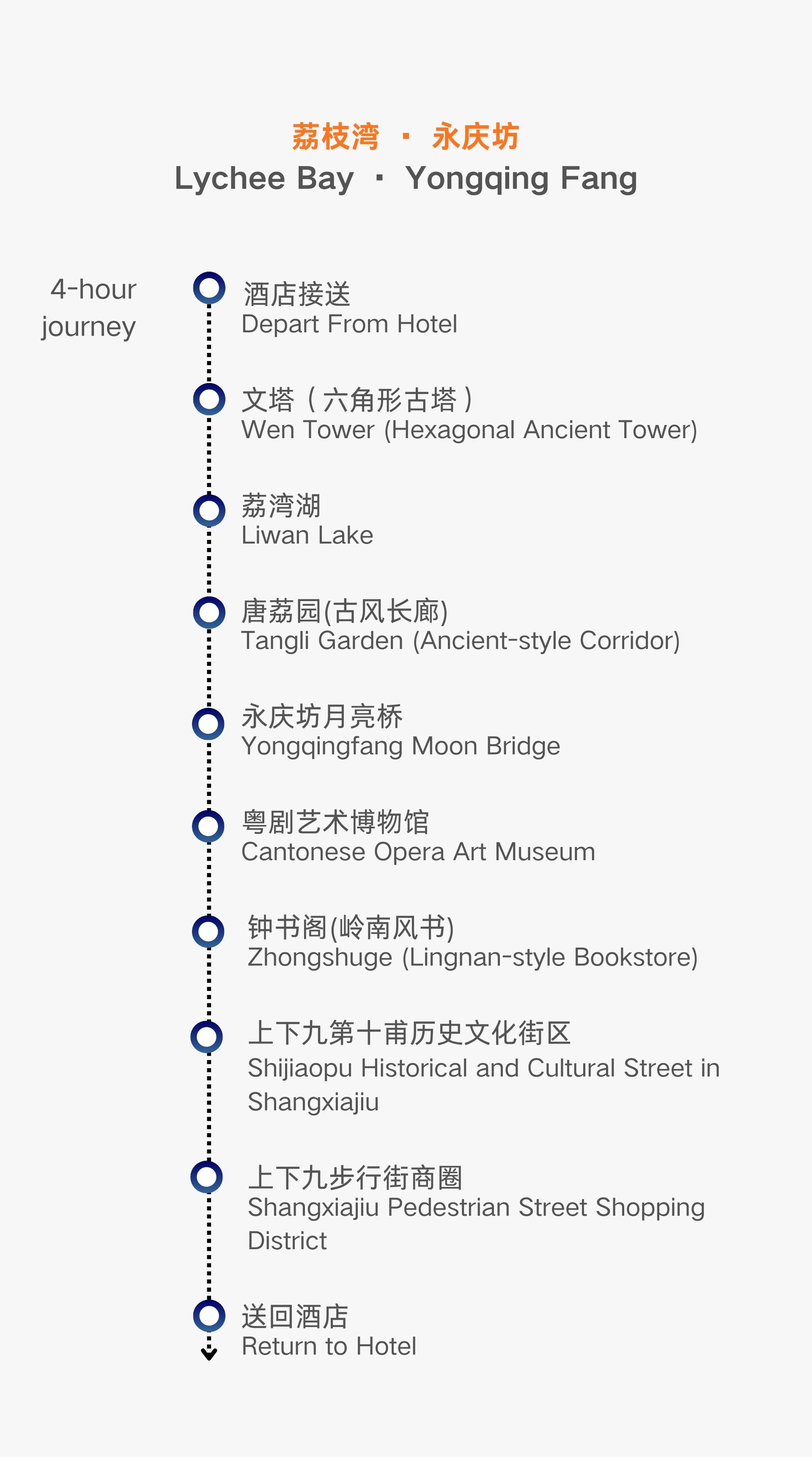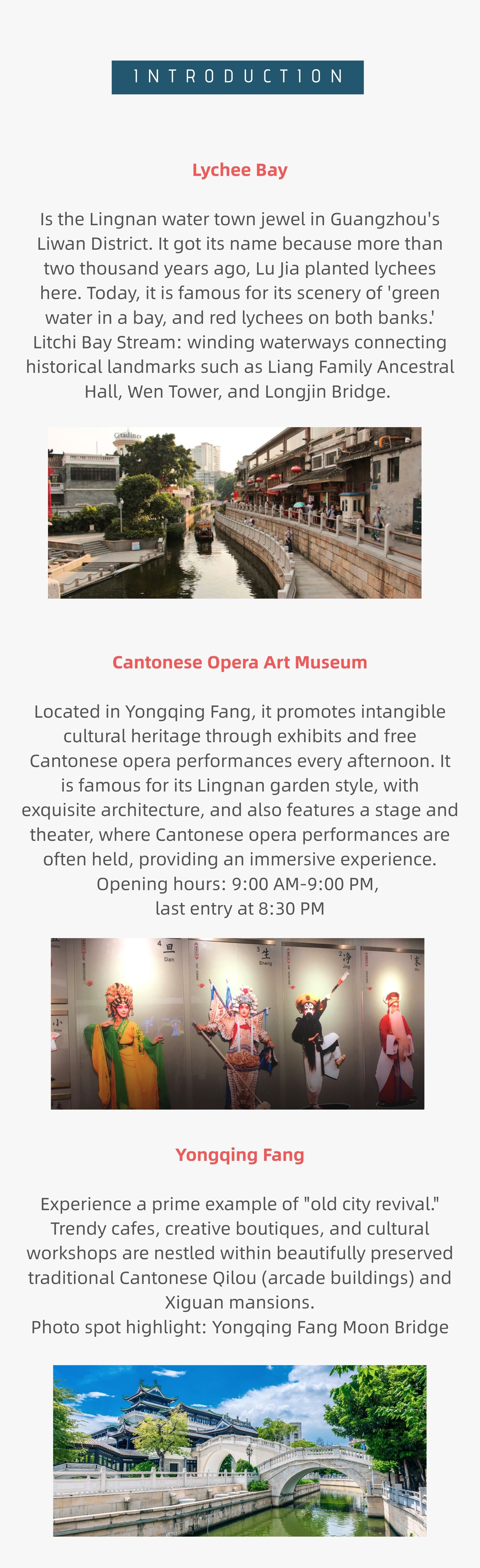This half-day tour links a thousand years of Guangfu culture, allowing you to experience the living heritage of Lingnan. At Lychee Bay, enjoy the magnificent scenery of Xiguan described by Tang dynasty poets: 'The bay's water is green, the lychees on both banks are red.' Wander through the arcade streets of Yongqing Fang and visit the Cantonese Opera Art Museum. From the classic arias of the Lady Hung Sin nui to modern immersive performances, each exhibit tells the century-long elegance of the 'Southern Red Bean.'