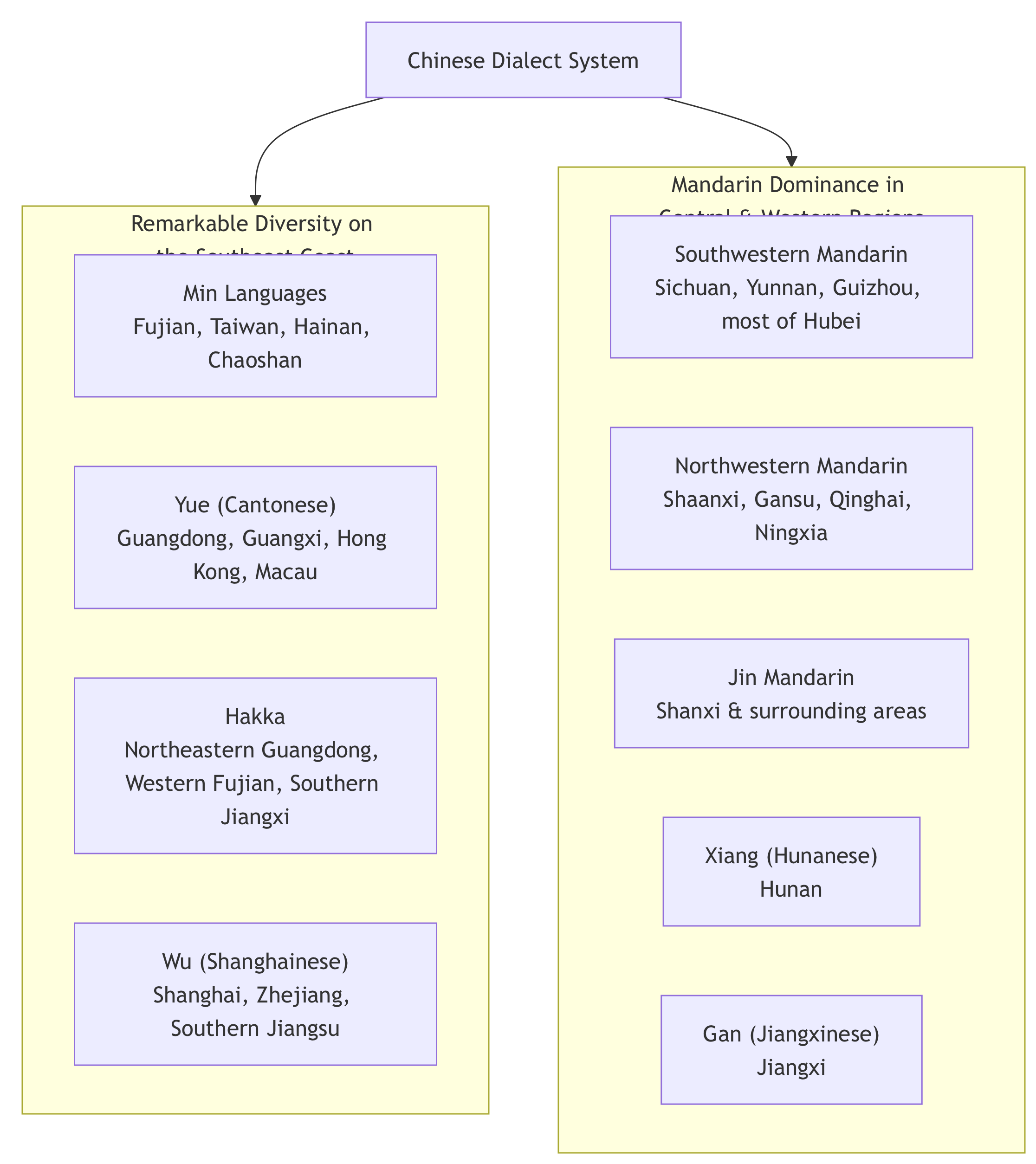 Important Note: The following chart visually illustrates the main distribution patterns of Chinese dialect groups in China, helping you understand their geographical diversity: