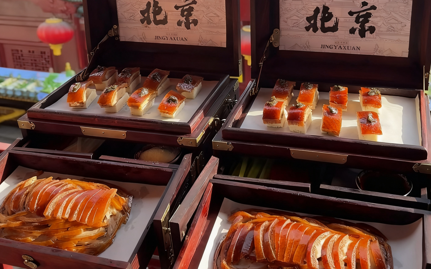 Hand baked marinated beef and mutton on a specially made iron grill, with fireworks rising and aroma overflowing, showcasing the hearty hospitality and dining pleasure of Beijing people.